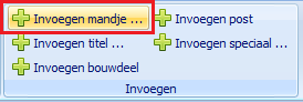 Om de items uit het mandje te plaatsen in de begroting, klikt u in CasadataCalc op het lint in de sectie 'Invoegen' op de knop 'Invoegen mandje ...':