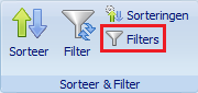 Over de geopende begroting kunnen filters worden gezet met de knop Filters, waardoor een selectie van regels zichtbaar wordt. De doorrekening van de begroting verandert hierdoor tevens.