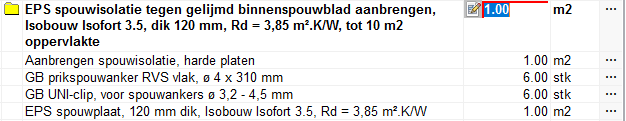 Na het klikken op OK wordt het rekenblad gesloten en de regel hoeveelheid daadwerkelijk gekoppeld. Deze waarde is nu niet meer direct aan te passen, met klikken erop opent direct de bijbehorende meetstaat.